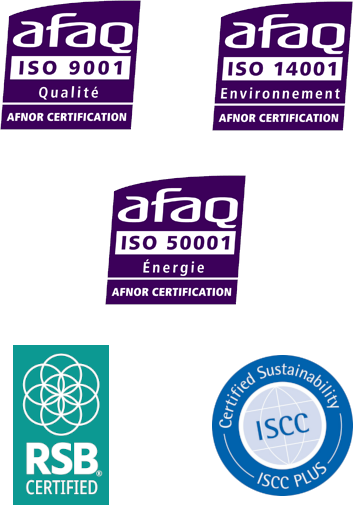 Les certifications RSB et ISCC+ s’adressent à des entreprises engagées dans des démarches d’utilisation de matières premières durables (matières biologiques ou fossiles recyclées).